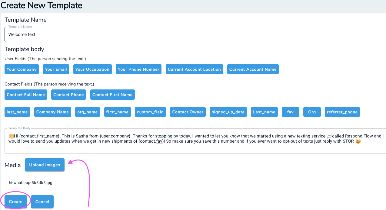 - Contact Fields (Usually the name of the person who will receive the text)