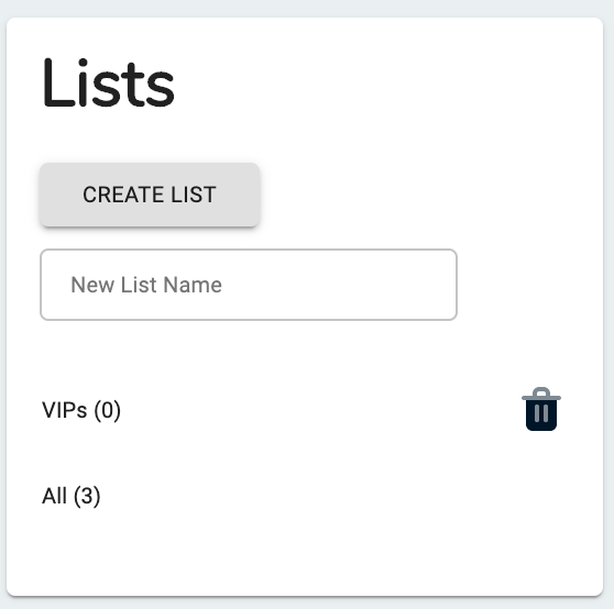 Once you get into contacts, click CREATE LIST then add your new list name and hit the “enter” or “return” button on your keyboard.